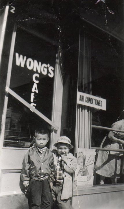 8. Mary Rose Wong submitted this photo of her younger brother Gary Wong and his nephew Allan McNeill in front of the door to Wong’s Cafe on Main Street, 1950s. Mary Rose added these comments: “Brother Gary with his nephew Alan McNeill…..1957, this would have been snapped by our mother Molly Lee.